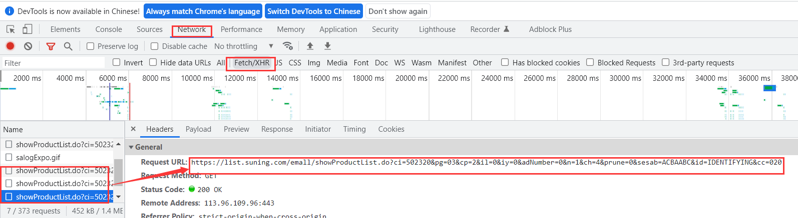 每翻一页,showProductList文件中的Request URl值都不一样,如下: