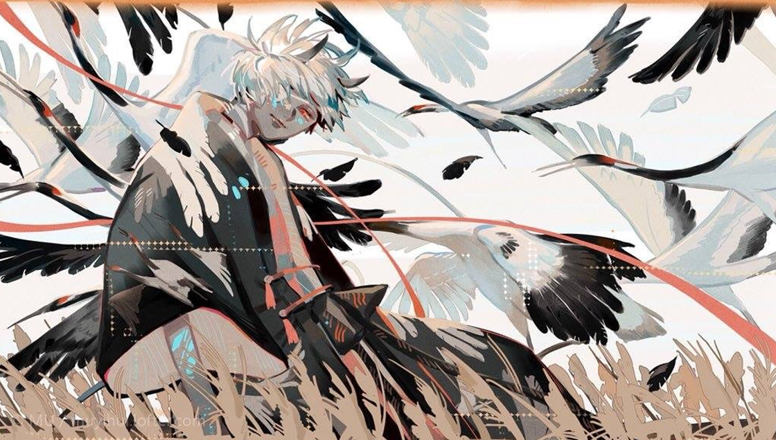 红线:用鹤的身体与另一只鹤的翅膀连接