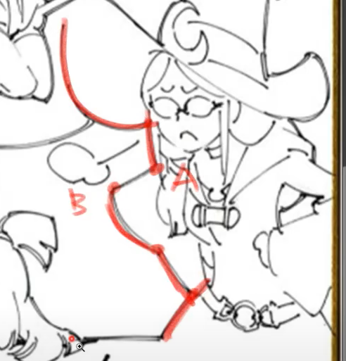 多数的萌新,基本都是直接上手临摹,不用任何的辅助线(效果如下图)。当她临摹出来的时候,她会觉得很像。但是这不是像的问题,这是原图的二次创作,只是表达出同样是**“s线”**罢了。为什么这么说,是因为临摹的线与原图的大小、比例都不一样。也就是说,型不准。